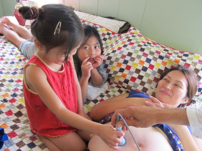 第4子を自宅出産したのは、ニューヨーク州の郊外に住んでいる時でした。この時にお世話になったのは助産師さん2人のチームで、我が家から車で30分ぐらいの場所に診療所を持っていました。定期検診は助産師さんの診療所に通い、妊娠後期には自宅の場所確認も兼ねて、自宅での定期検診も1度ありました。この2人の助産師さんはとても経験が豊富なベテラン助産師さん。どんな質問にもすぐに的確に返事が返ってくるような感じです。定期検診では、血圧、体重、尿検査、子宮底、腹囲、胎児の心音のチェックをしました。